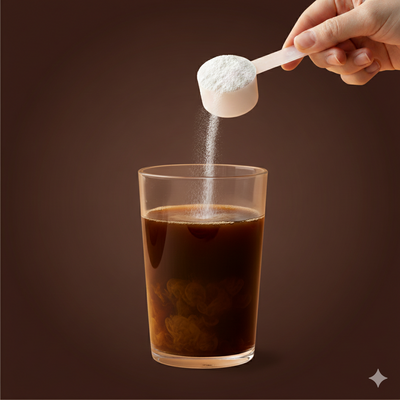 Mischen Sie es in Kaffee, Tee, Wasser oder einen Smoothie, es löst sich vollständig auf – das Getränk bleibt unverändert und die Routine wird nicht unterbrochen.